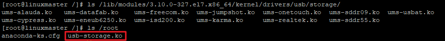 #mv -vf /lib/modules/3.10.0-327.el7.x86_64/kernel/drivers/usb/storage/usb-storage.ko /root/