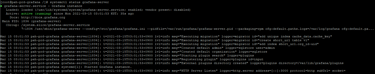 ④ grafana 서비스 프로세스와 포트 상태를 확인합니다.