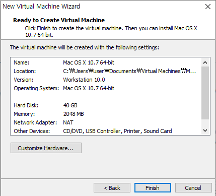 ③ 생성된 MacOS 가상머신 CD/DVD 롬에 MacOS.iso 파일 이미지 삽입