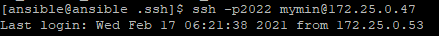 ② ssh 접속 시도(패스워드 없이 접속 성공)